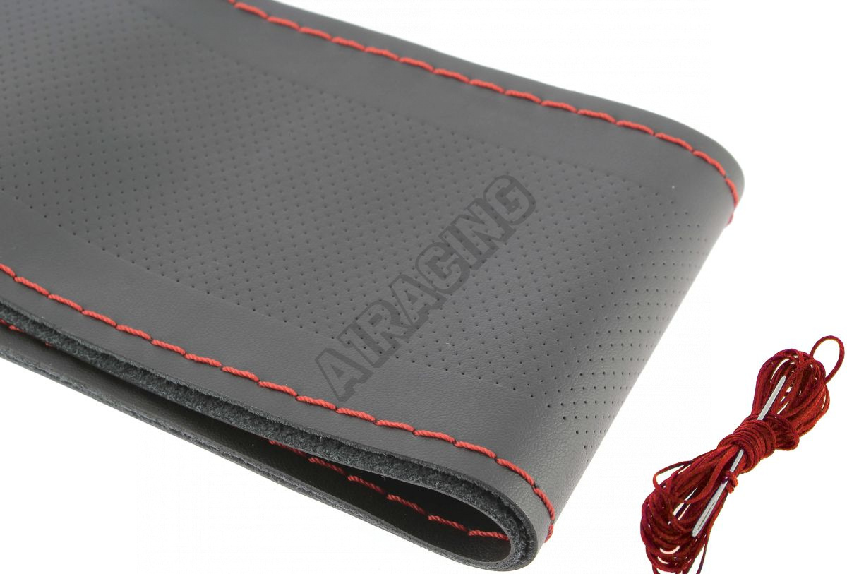 Potah na volant kožený černý/ červený šev (pro průměr 37-39 cm a tloušťku - měřeno jako obvod 9,4 - 10,5 cm)