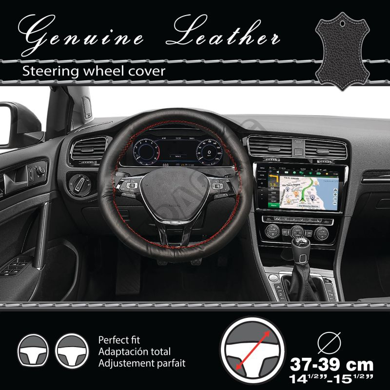 Potah na volant kožený černý/ červený šev pro průměr 37-39 cm