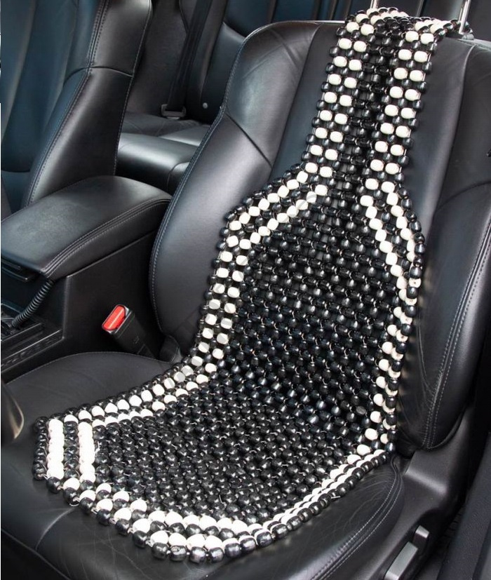 Vzdušný masážní potah na sedák automobilu. Upevnění pasuje na většinu běžně používaných sedadel. Potah je vyroben z dřevěných kuliček, které příjemně masírují tělo, podporují krvní oběh, pomáhají snižovat únavu i bolestivost zad a umožňují proudění vzduchu mezi sedadlem a zády řidiče. Potah se rozloží na sedák a v horní části se upevní pomocí šňůrek za opěrku hlavy. Tento potah sedadla nebude překrývat vyústění airbagů v operadle sedadla, proto tetno potah lze použít i na sedadla se zabudovaným bočním airbagem.