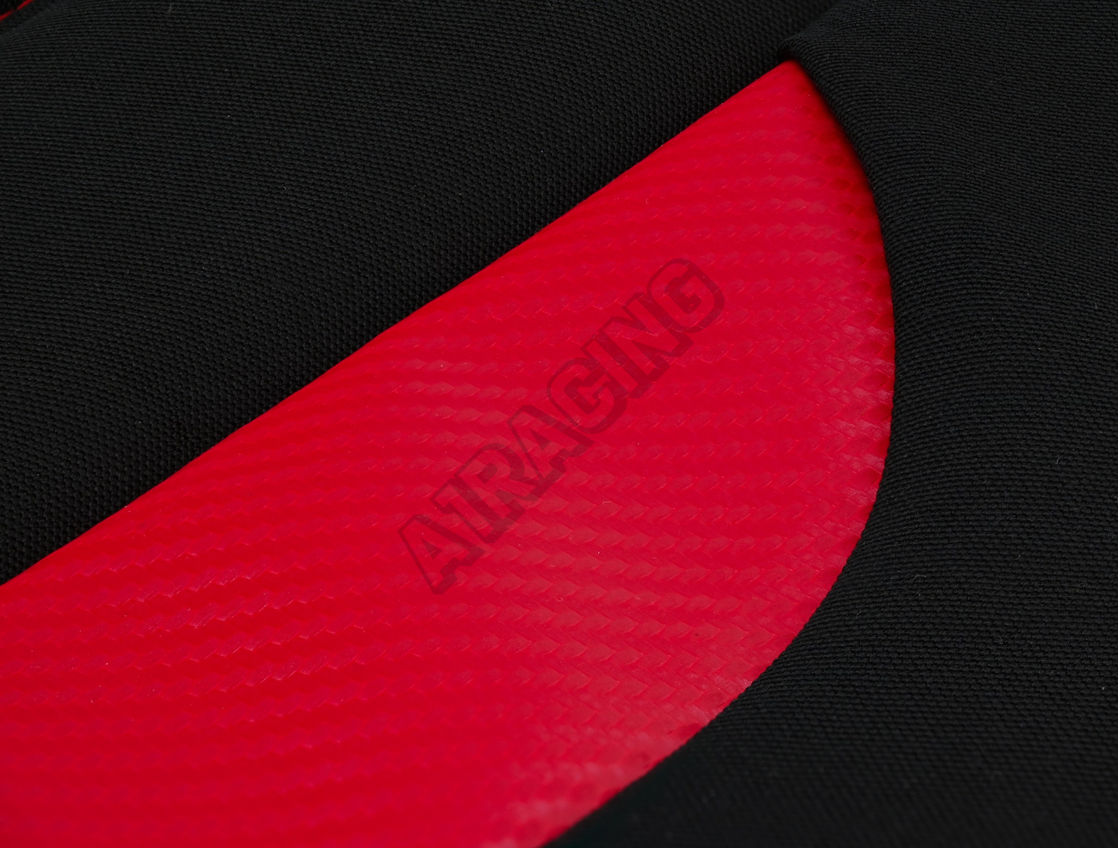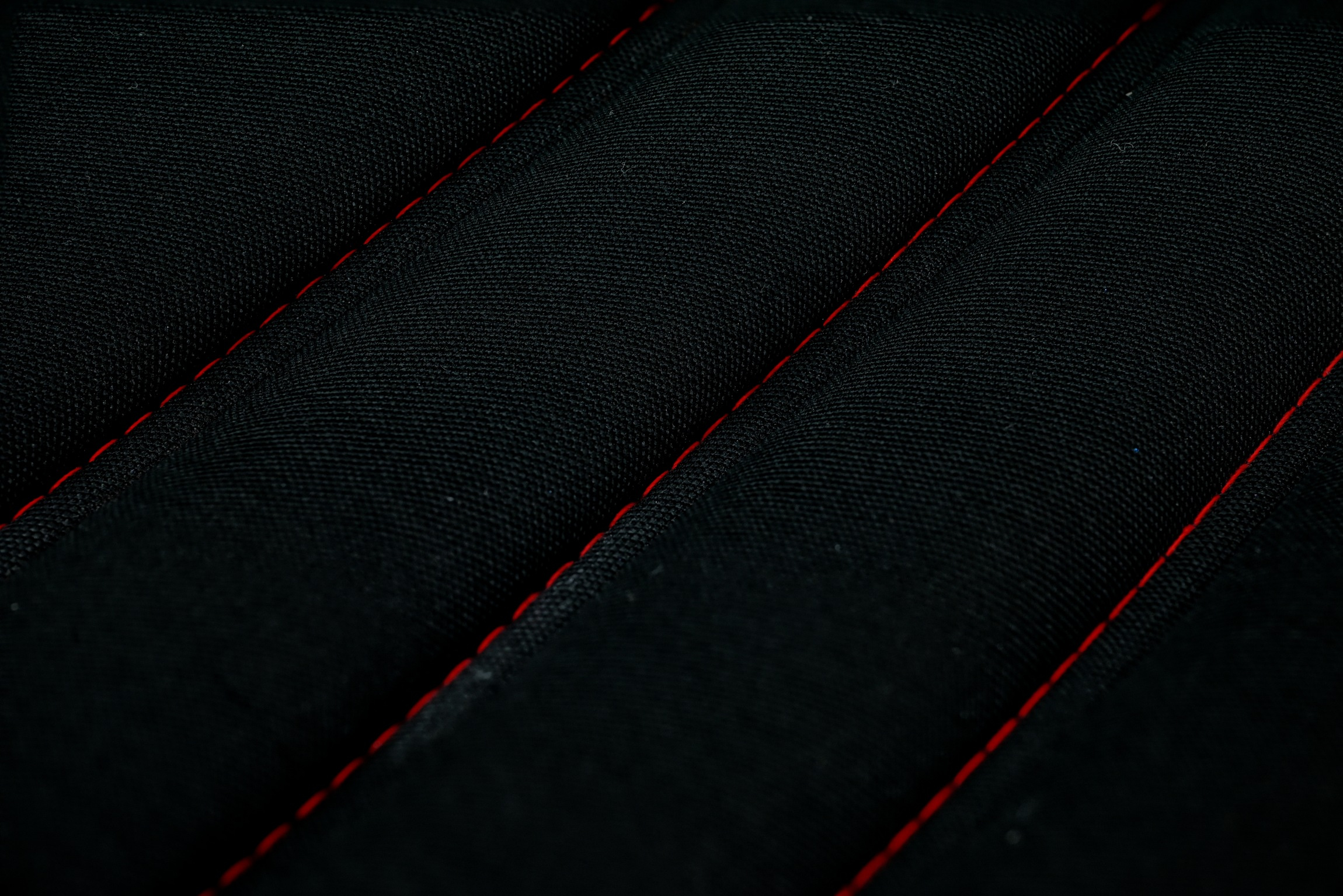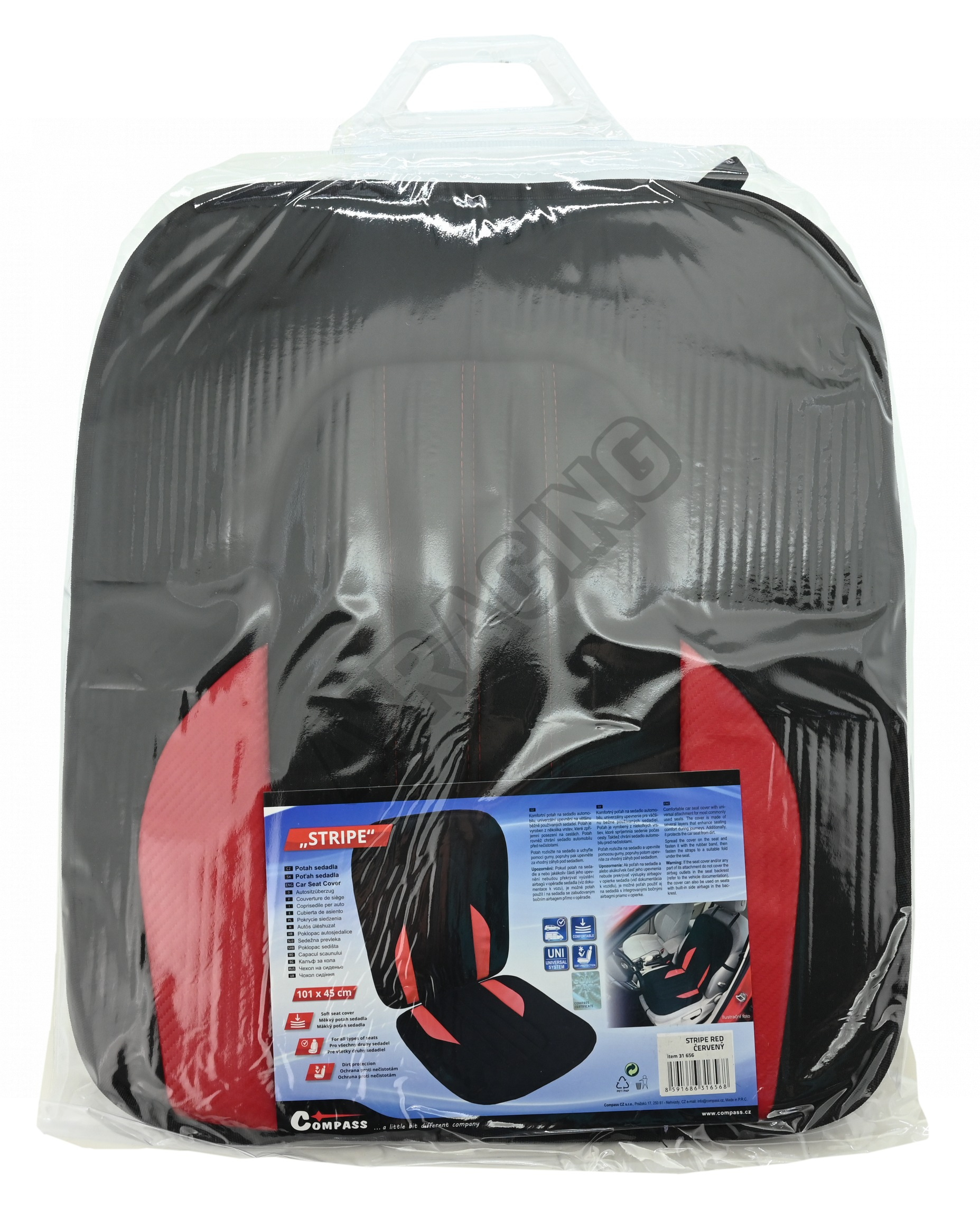 Komfortní potah sedadla s atraktivním lesklým červeným prvkem a červeným prošíváním. Potah je vyrob