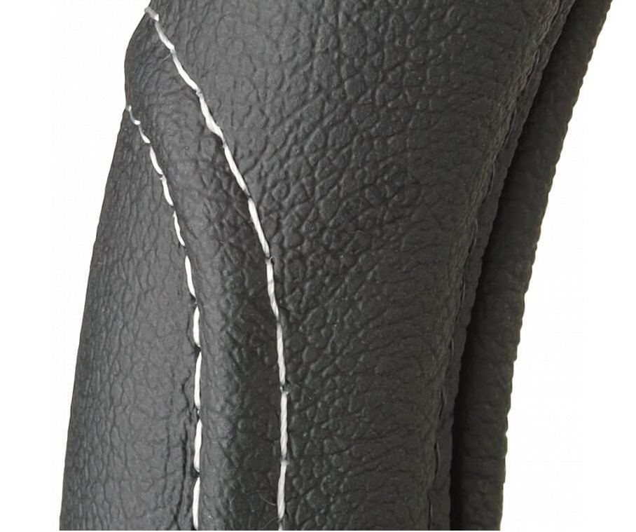 Velmi kvalitní prémiové kožené provedení. Tento potah je po obvodu nepravidelný s prošitím, které snižuje sklouzávání rukou. Určeno pro auta s větší volantem o průměru 42 cm.