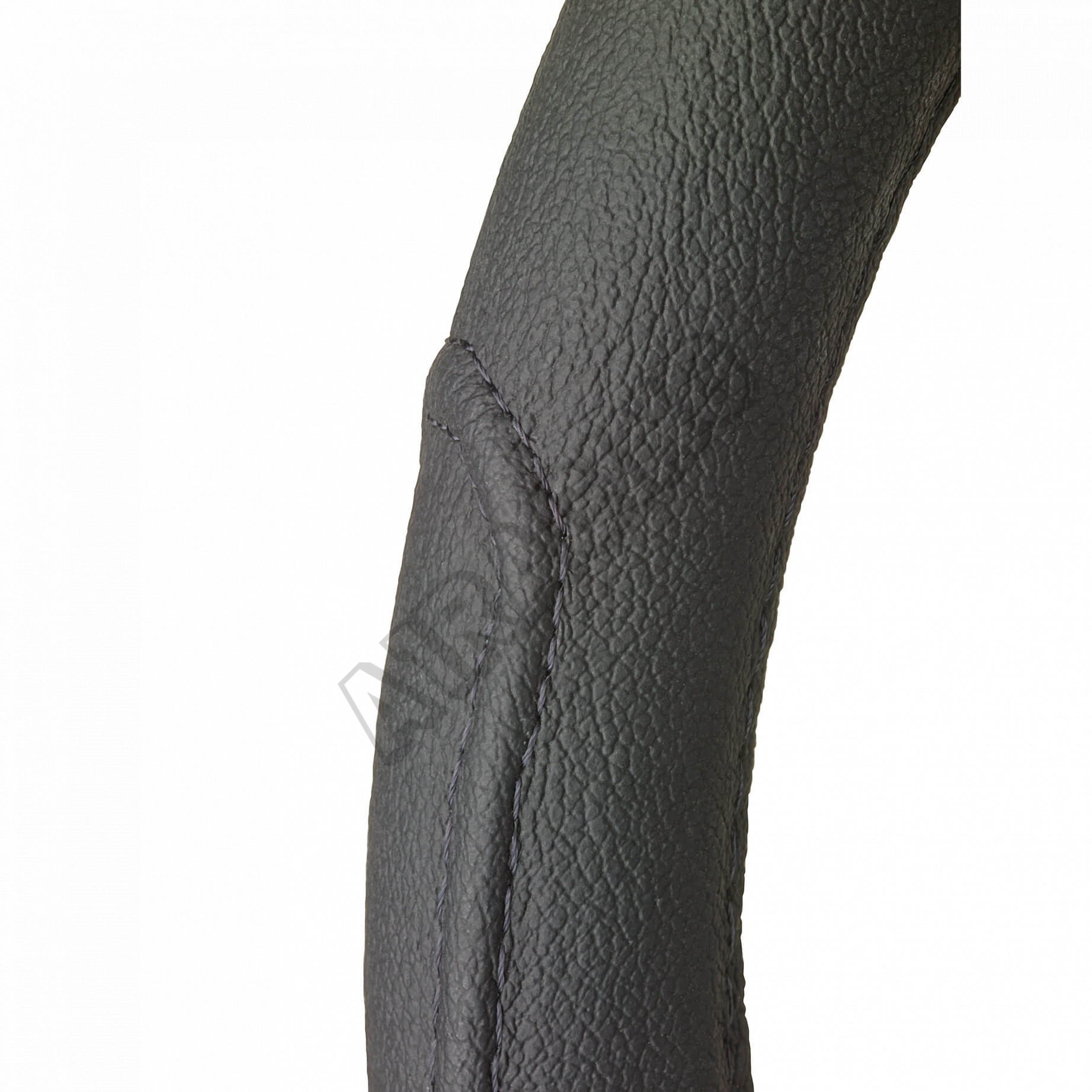 Velmi kvalitní prémiové kožené provedení. Tento potah je po obvodu nepravidelný s prošitím, které snižuje sklouzávání rukou. Určeno pro auta s větší volantem o průměru 42 cm.