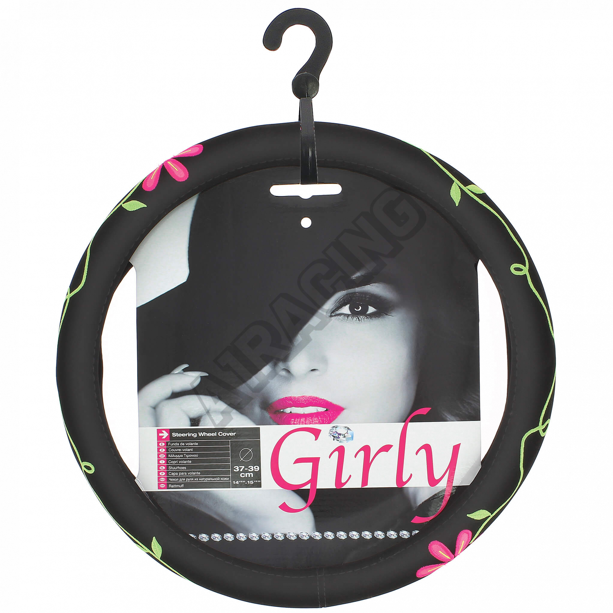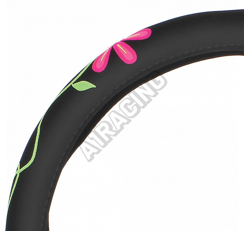 Krásný designový potah volantu s motivem květin. Pasuje pro běžný průměr volantu 37-39 cm. Motiv květin je vyšitý, nikoliv nějaký plastový nástřik.