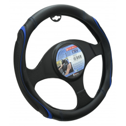 Potah volantu s robustním a zároveň pohodlným provedením úchopové části. Zpracování na černém podkla