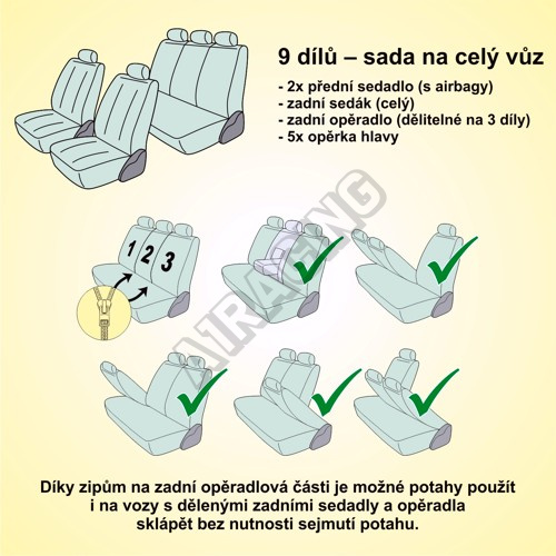 Potahy sedadel sada Jack II. airbag 9ks1 004 Kč