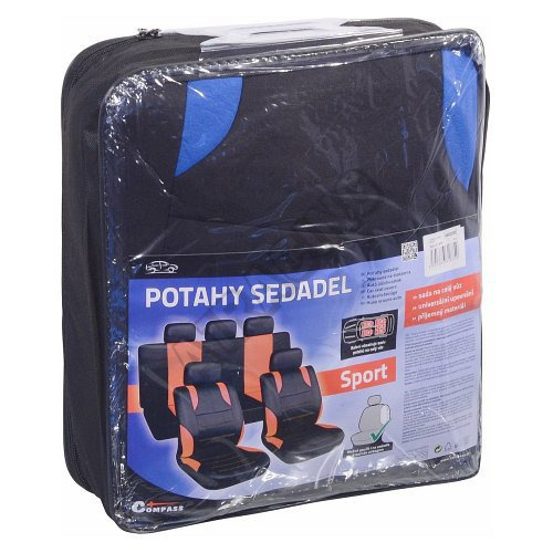 Potahy sedadel sada Sport modré airbag (2x přední sedadlo a zadní sedadla, 5x opěrka hlavy)