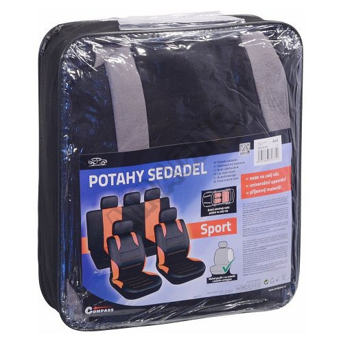 Potahy sedadel sada Sport šedé airbag (2x přední sedadlo a zadní sedadla, 5x opěrka hlavy)
