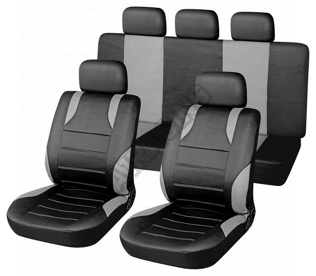 Potahy sedadel sada Sport šedé airbag (2x přední sedadlo a zadní sedadla, 5x opěrka hlavy) Potahy s