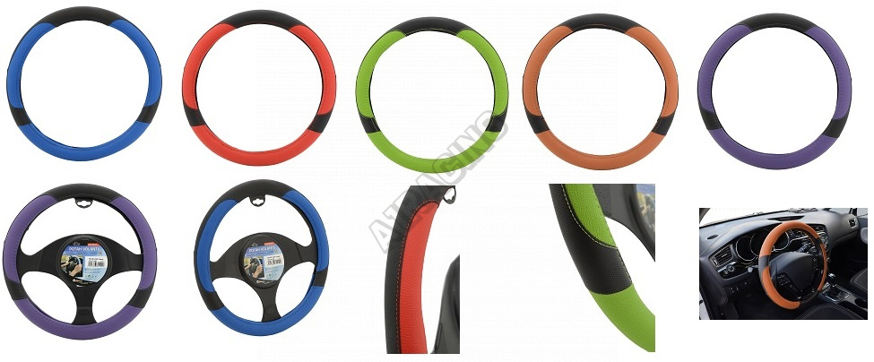 Potahy volantu COLOR LINE modrý, červený, zelený, oranžový, fialový Potahy volantu se stylovým prov