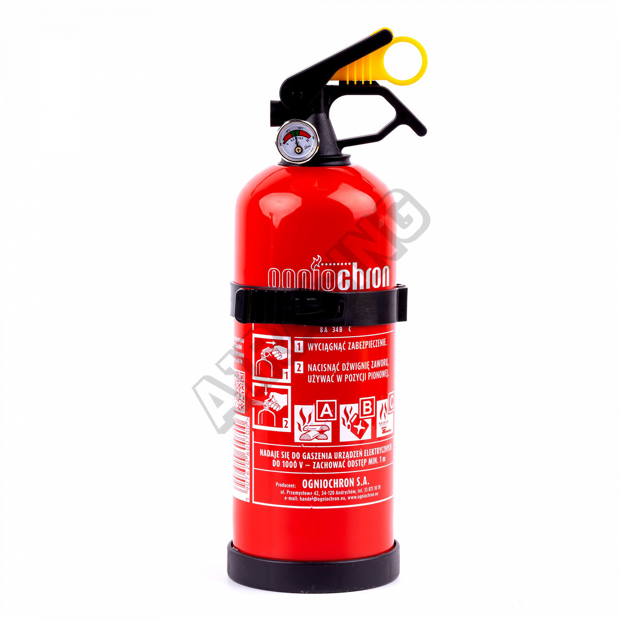 Práškový hasicí přístroj ABC s manometrem a držákem, 1 kg