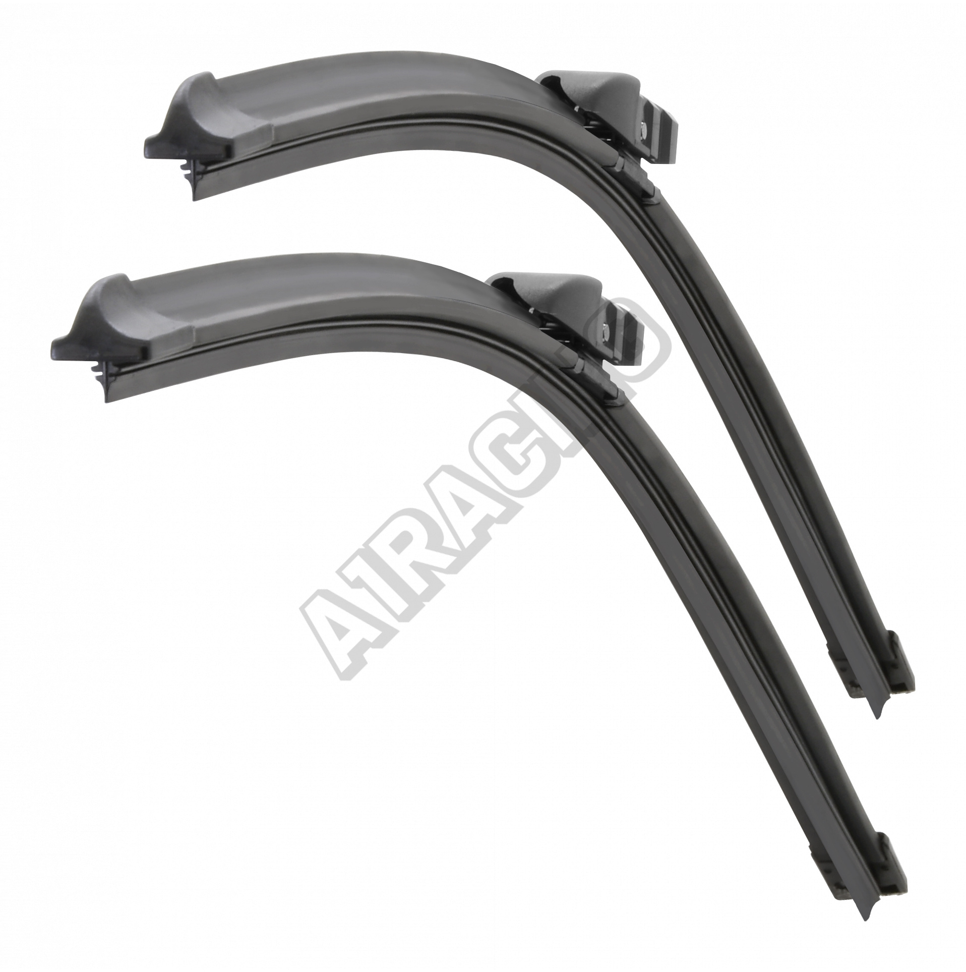Sada dvou plochých stěračů FLAT (řidič + spolujezdec) se speciálním uchycením. Délky stěračů a systém uchycení na ramínko jsou přizpůsobeny vybraným vozům (viz tabulka použití).