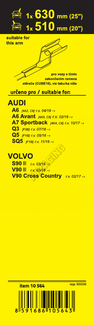 Přední stěrače FLAT (630 + 510 mm) AUDI A6, A7, Q3, Q5, SQ5, VOLVO S90 II, V90 II