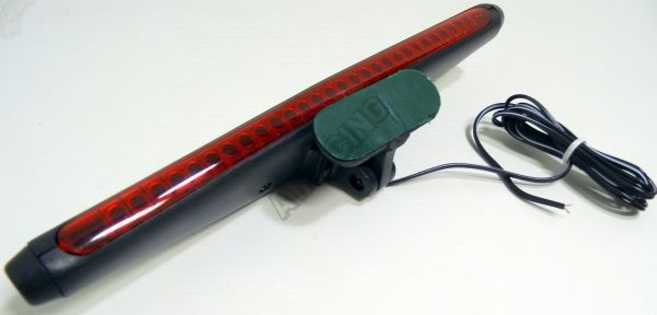 délka 25 cm, univerzální ve 2 polohách, lze přilepit na zadní sklo a nebo spodní nohu vyhnout tak, aby jste toto brzdové světlo umístili na za zadní sedadla většinou u verze karoserie sedan, kde se nevyklápí kufr včetně zadního skla, kde po umístění je hlavní led plocha o 8 cm výše než je ukotvená spodní část nohy,