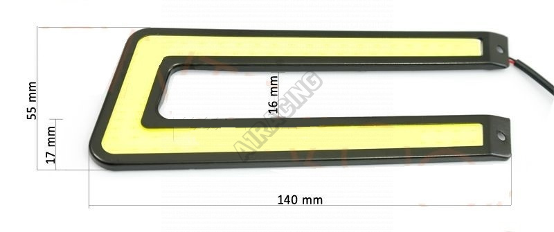 Rozměry denního svícení: délka 140mm, šířka 55mm, šířka "ramene" 17mm, hloubka: 5mm