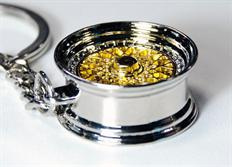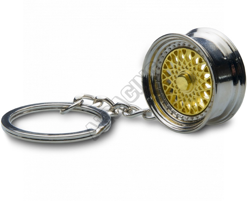 Luxusní a stylový přívěsek na klíče v podobě litého kola se zlatým středem a chromovým límcem.