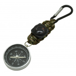 Outdoorový přívěšek s kompasem a teploměrem pro zavěšení za karabinku.