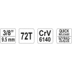 Ráčna je opatřena přepínací páčkou a jemným chodem zajištěným 72 zubým mechanismem.