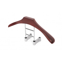 Originál ramínko na oblečení. Design nerezové oceli a masivního lakovaného dřeva. Uchycení na opěrku hlavny u předního sedadla.