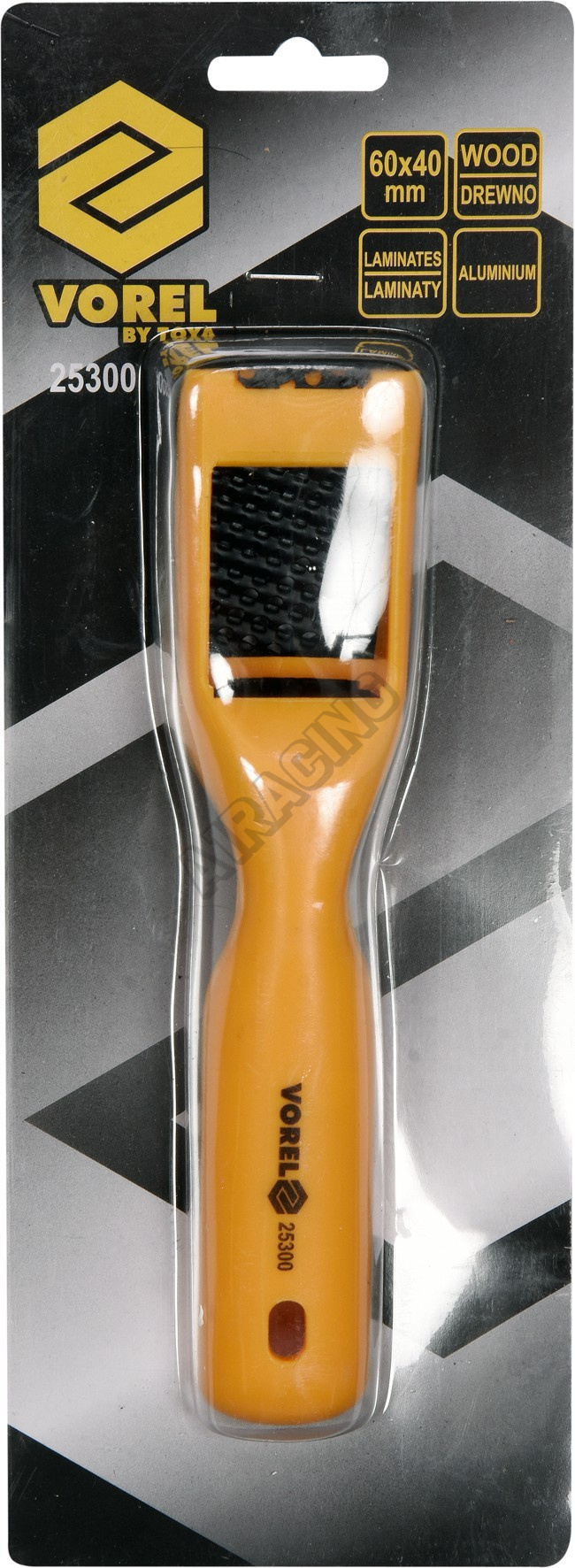 Rašple na sádrokarton s pracovní plochou z 65Mn oceli s rozměry 60 x 40 mm. Plocha je opatřena speci