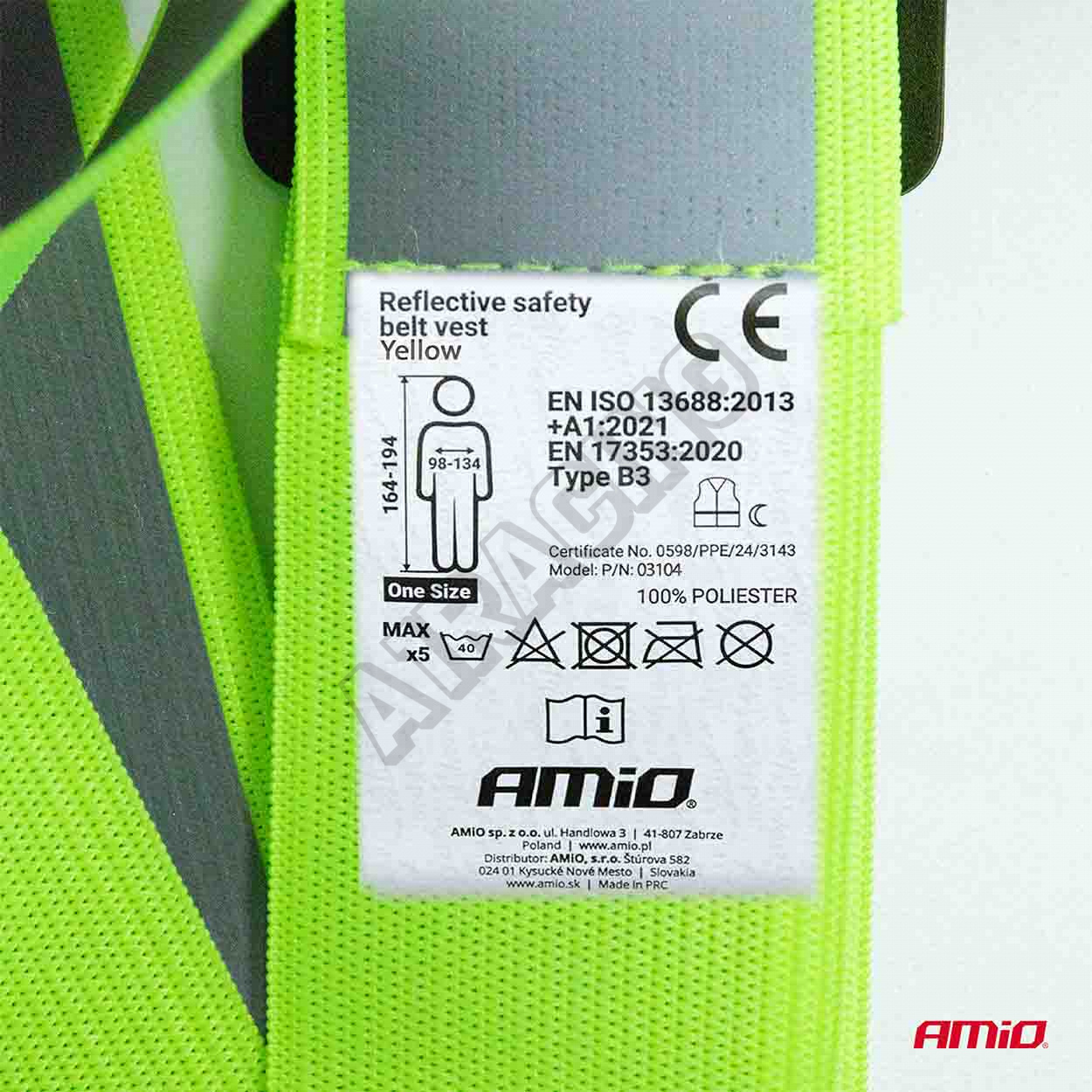 Reflexní zelené popruhy, reflexní silniční vesta AMIO-03104