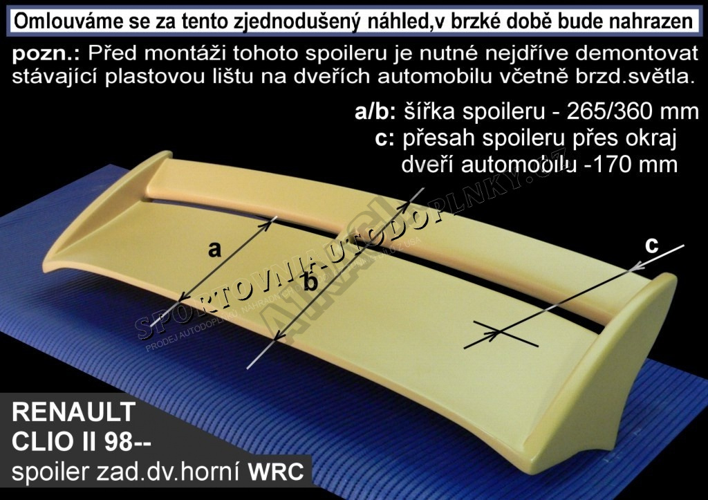 RENAULT CLIO II (98+) spoiler zad. dveří horní RC4L