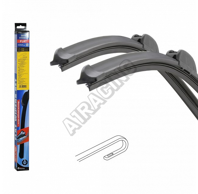 Stěrače FLAT SET (sada 2 ks na celé auto). Vysoce kvalitní pružný člen plochého stěrače zajišťuje stejnoměrný tlak grafitového břitu v celé jeho délce, což zamezuje rozmazávání nečistot a vytváření pruhů.
