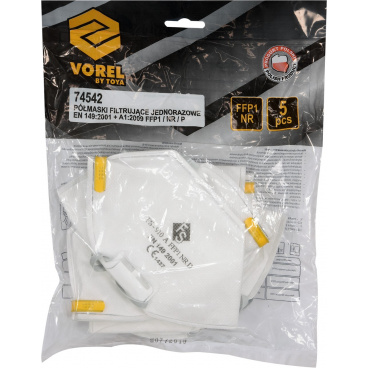 Filtrační protiprašná maska, s vyztuženou nosní částí, s třídou ochrany P1. Chrání dýchací orgány př
