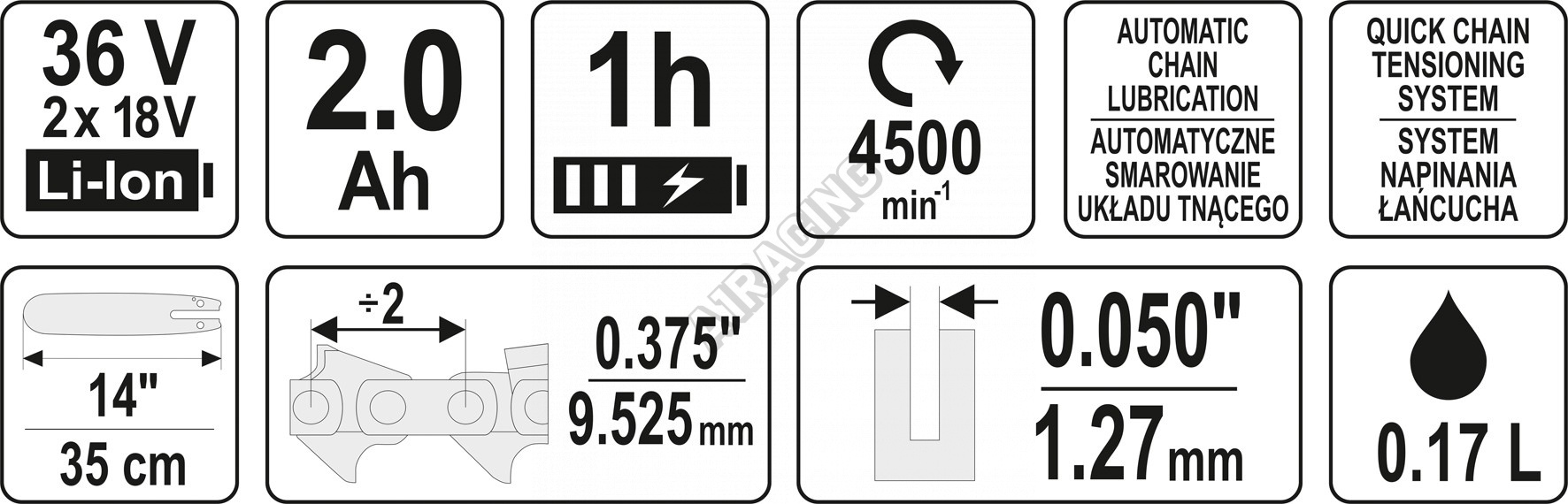 Řetězová pila 14'' AKU 36V=2 X 18V SET