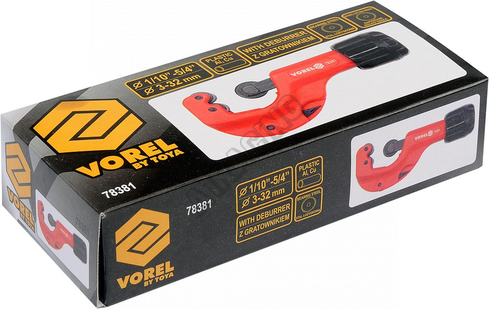 Řezáč na trubky měděné, hliníkové a plastové. Pracovní rozsah 3-32 mm. Tělo je vyrobeno z hliníkové slitiny. Čepele z ložiskové oceli.