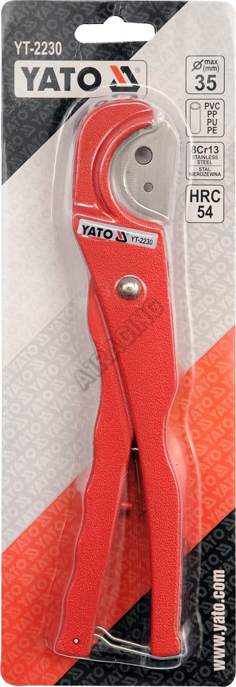 Instalatérské nůžky, pro řezání plastových trubek do průměru 35 mm. Materiál těla je slitina hliníku
