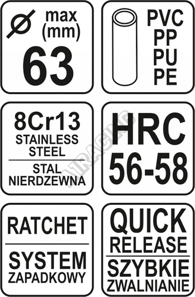 Instalatérské nůžky, pro řezání plastových trubek do průměru 63 mm.