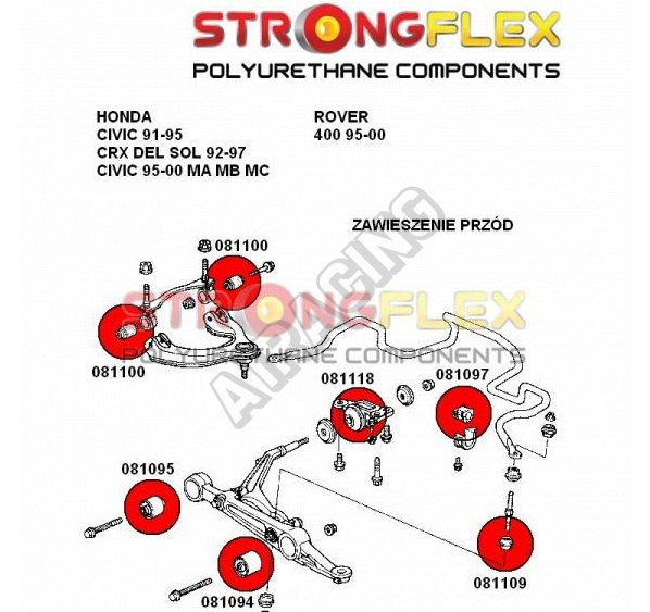 Rover StrongFlex Sport sestava silentbloků jen pro přední nápravu 14 ks obsahuje:
