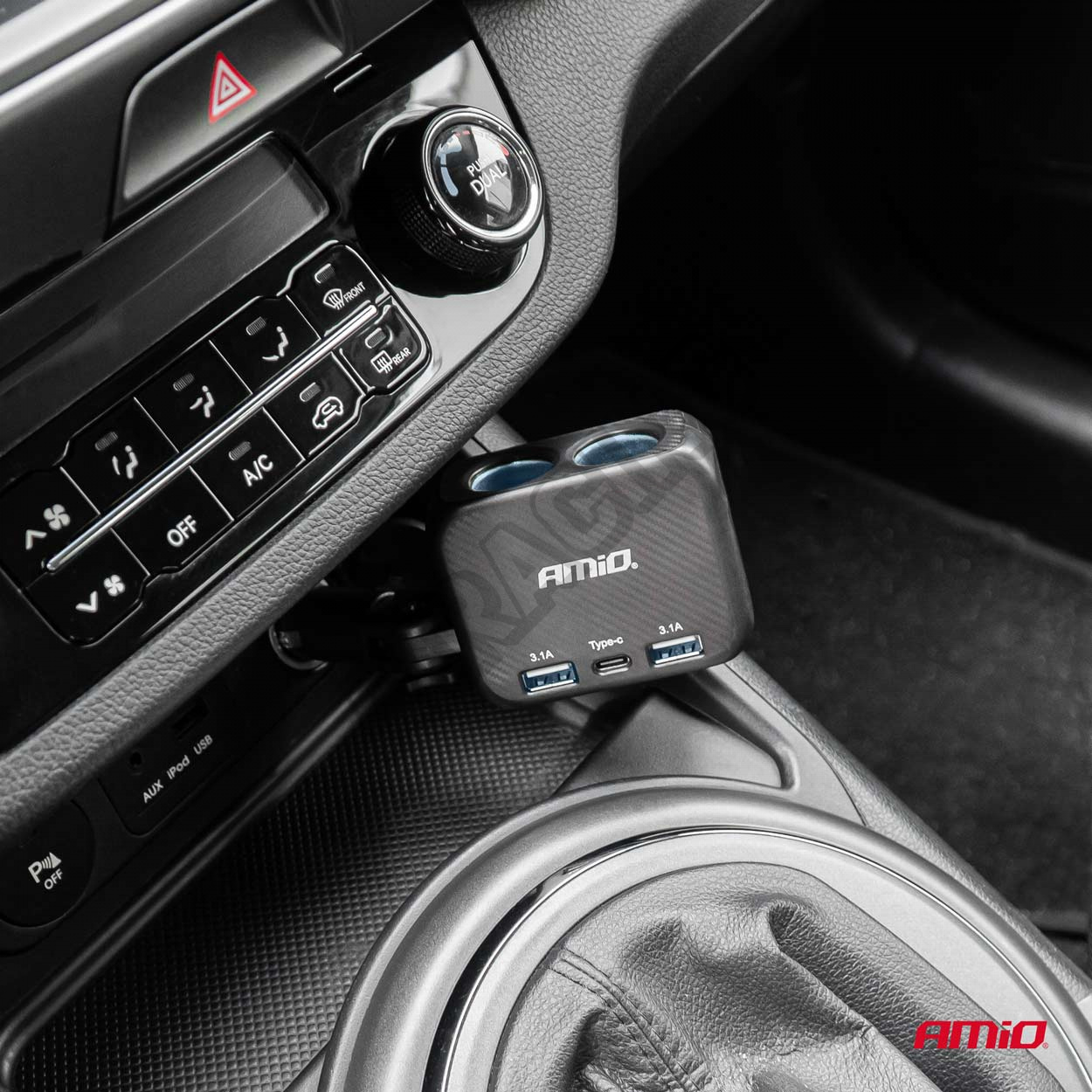 0 recenze produktu Rozdělovač zásuvky zapalovače s nabíječkou 2x USB-A 1x USB-C 12V 24V 100W 180° AMIO-04357