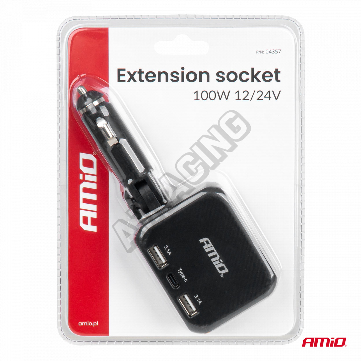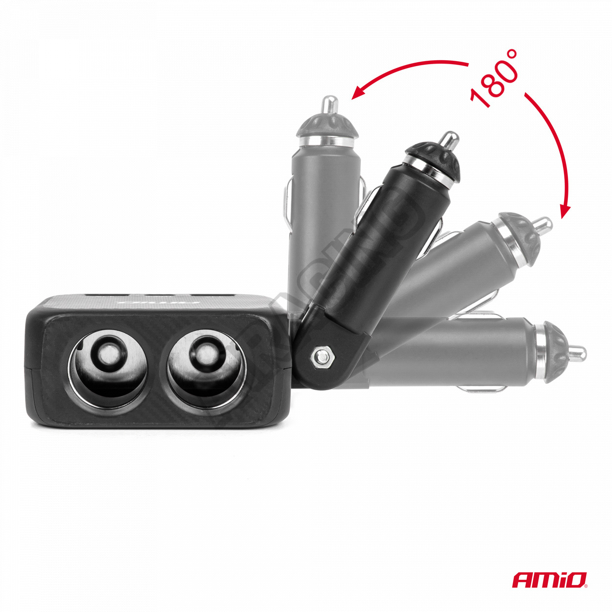 Rozdělovač zásuvky zapalovače s nabíječkou 2x USB-A 1x USB-C 12V 24V 100W 180° AMIO-04357