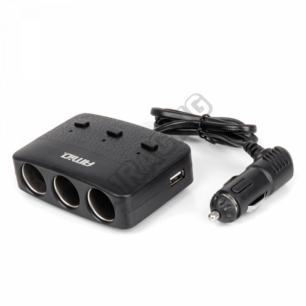 0 recenze produktu Rozdělovač zásuvky zapalovače s nabíječkou 2x USB-A ON/OFF LED 12V 24V 100W 70cm AMIO-04363