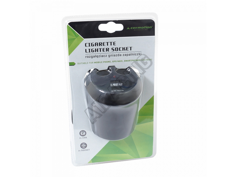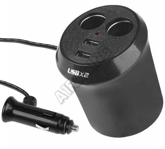 Vysokopevnostní štípačka. Napájeno zásuvkou litovače cigaret. Integrovaný 1 000 mA USB port. K rozbočovači můžete připojit napájecí zdroje pro notebooky a tablety, nabíječky pro automobily a GPS.