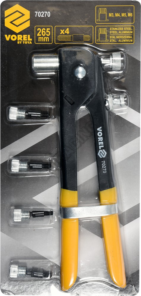 Ruční nýtovačka pro nýtovací matice M3-M6 od firmy Vorel 70270. Vyrobeno z odolné nástrojové oceli.