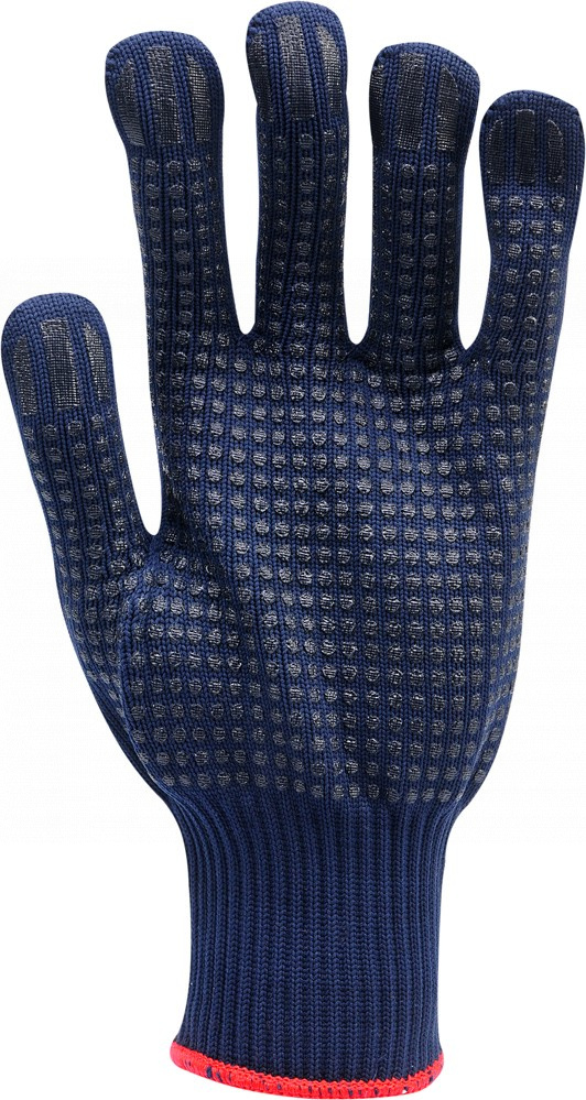 Rukavice jsou zhotoveny z bavlny a polyesteru zvyšujícího přilnavost, jsou zakončeny lemem a jsou odolné proti oděru.