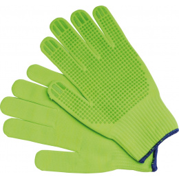 Rukavice jsou zhotoveny z bavlny a polyesteru zvyšujícího přilnavost, jsou zakončeny lemem a jsou odolné proti oděru.