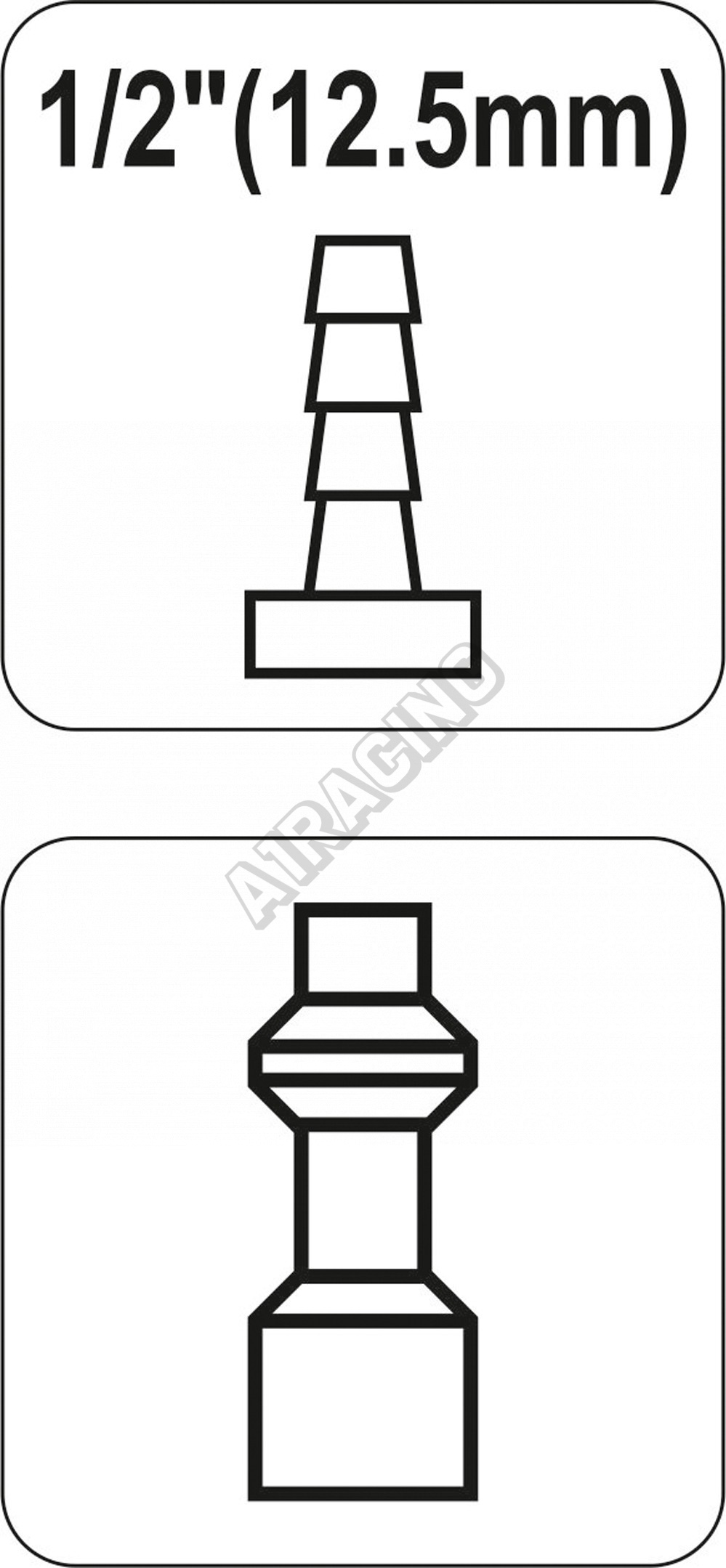 Rychlospojka pro vzduchové rozvody, vsuvka, s připojením na hadici. s vnitřním otvorem 1/2" (12,7mm). Vyrobeno z oceli Q235 s povrchovou úpravou niklováním.