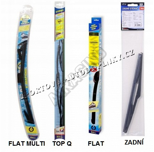 Stěrače FLAT SET (sada 2 ks na celé auto). Vysoce kvalitní pružný člen plochého stěrače zajišťuje stejnoměrný tlak grafitového břitu v celé jeho délce, což zamezuje rozmazávání nečistot a vytváření pruhů.