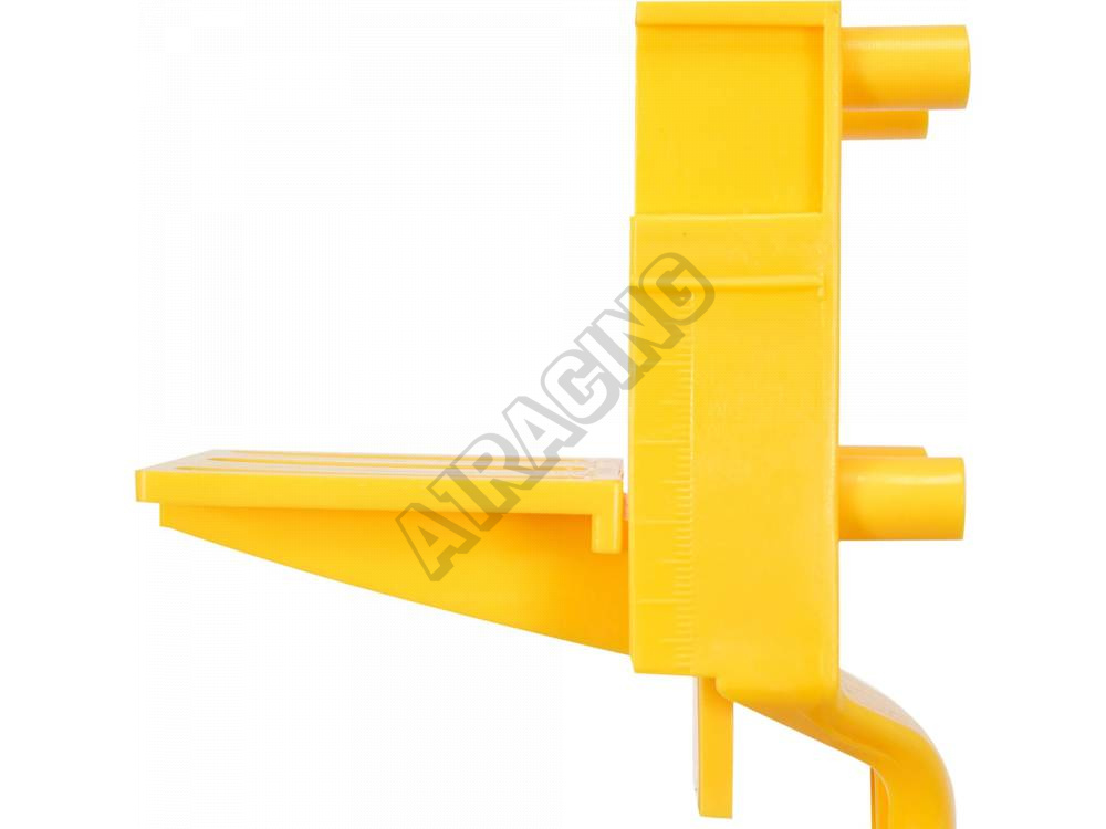 Design šablony umožňuje dělat otvory i na rovině, nejen na okrajích. Vyrobeno z nylonu, přidržovací pouzdra, které jsou zašroubovaná do těla jsou vyrobena z tvrzené oceli.