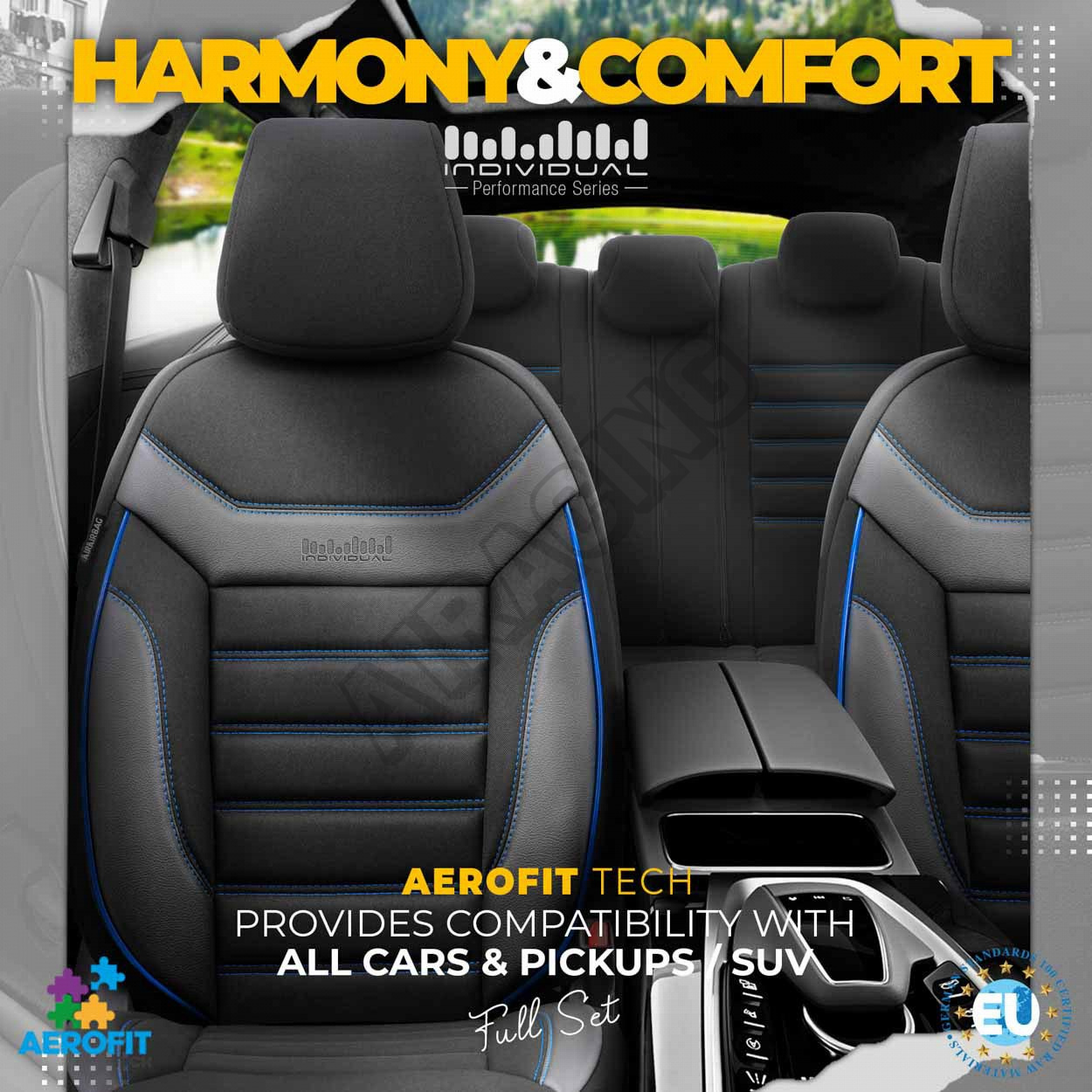 Potahy ve standardu mají certifikovaný šev AIRBAG, díky čemuž jsou přizpůsobeny pro automobily jak s bočními airbagy v sedadlech, tak i pro standardní sedadla. Díky použití speciálního švu, zakrývají sedadla vcelku, aniž by narušovaly funkci AIRBAGů.