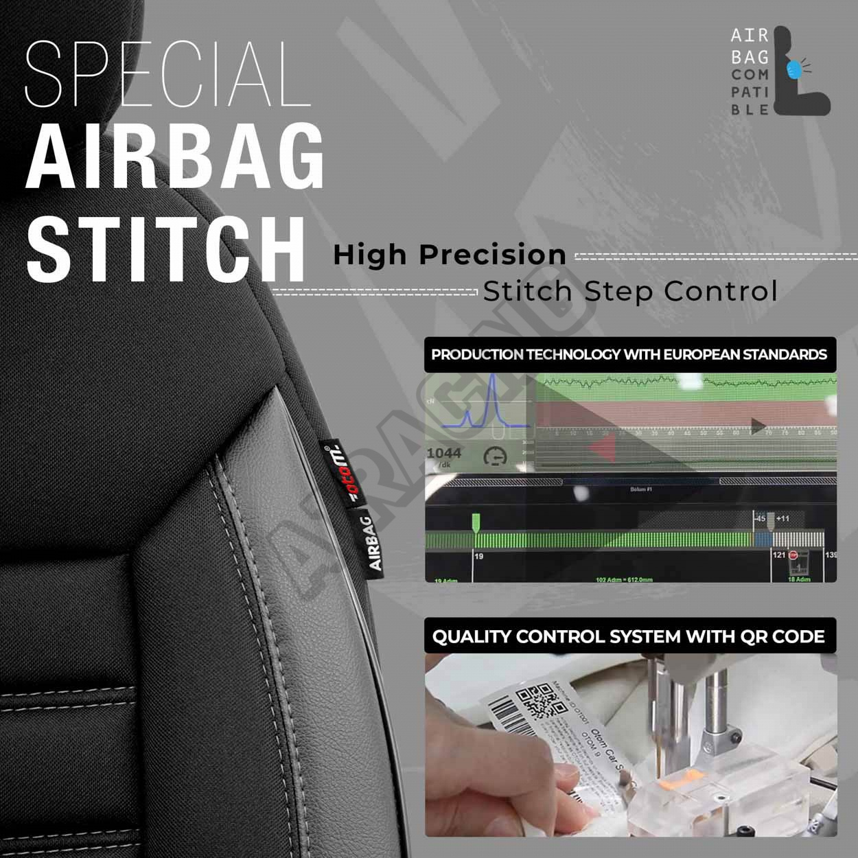 Potahy ve standardu mají certifikovaný šev AIRBAG, díky čemuž jsou přizpůsobeny pro automobily jak s bočními airbagy v sedadlech, tak i pro standardní sedadla. Díky použití speciálního švu, zakrývají sedadla vcelku, aniž by narušovaly funkci AIRBAGů.