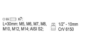 Tato sada je vhodná pro profesionály, především pro mechaniky. Bity jsou spolu s adaptérem uzpůsobeny pro práci s ráčnou 1/2". V sadě se nachází bity Ribe M5, M6, M7, M8, M10 a M12.