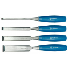Zhotovení čepele nástrojů z kvalitní oceli CrV. Jednotlivé nástroje mají odstupňovanou šíři 6; 12; 18 a 24 mm.