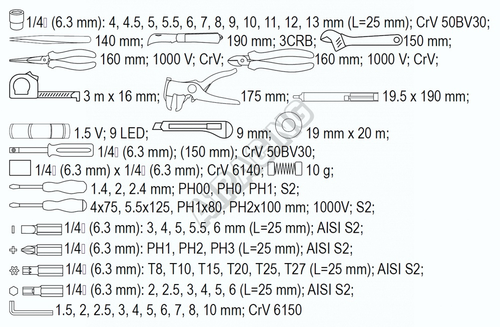 Obsahuje 68 speciálně vybraných nástrojů.