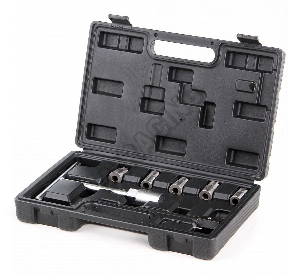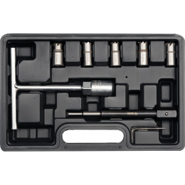 • Obsah sady • Fréza plochá 15 x 19 mm - univerzální použití • Fréza plochá 17 x 17 mm Delphy / Bosch (BMW / PSA / Renault / Ford) • Féza plochá 17 x 19 mm (Mercedes CRD) • Fréza úhlová 17 x 17 mm (Mercedes-Benz CDI) • Fréza úhlová 17 x 21 mm ( Fiat / Iveco) • Klíč pro aplikaci s T rukojetí • Středící trn