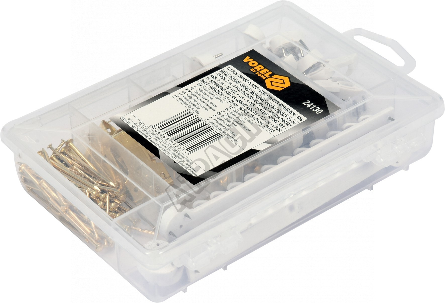 Sada 121 kusů háčků a příslušenství pro zavěšení obrazů.