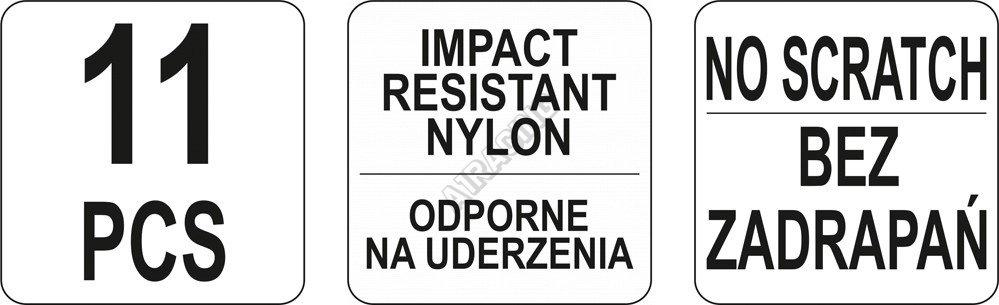 Souprava je vyrobena z tvrzeného nylonu. Jednotlivé nástroje mají speciální profily, které umožňují použití páky při demontáži čalounění a lišt apod.